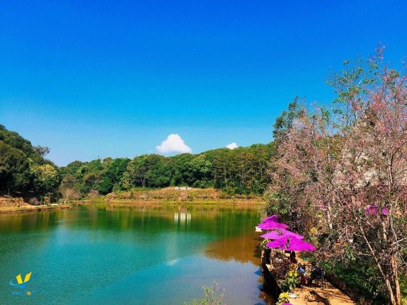 - Hồ Đăk Ke - một trong 7 hồ trong truyền thuyết ở Măng Đen, tại đây quý khách có thể tản bộ quanh hồ ngắm những cành hoa phượng tím, hoa sim tím, tham gia trò chơi đạp vịt, xe đạp nước… (chi phí tự túc).