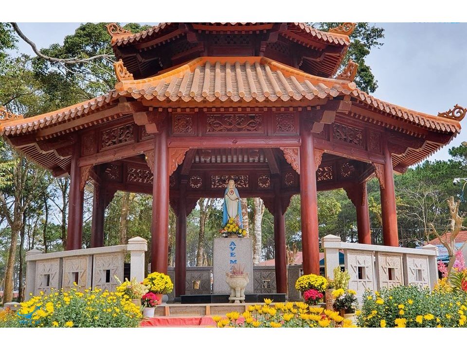 - Tượng Đức mẹ Măng Đen – hay còn được gọi đức mẹ Sầu Bi, đức mẹ Cụt Tay nơi được mệnh danh là vùng đất linh thiêng tại Măng Đen.