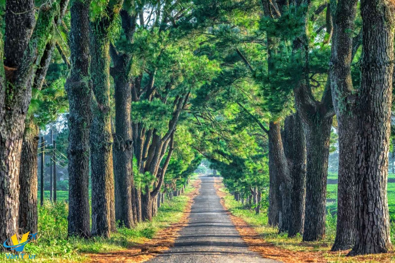 - Tham quan hàng thông 100 tuổi Trải qua nhiều biến đổi về mặt thời gian, hai hàng thông bên đường vẫn phát triển xanh tốt, xòe tán rộng, thân cây to, ba người ôm không xuể.