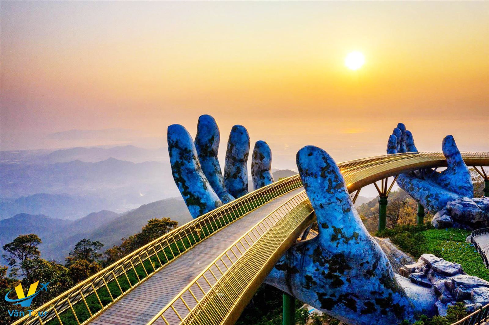 - Quý khách thả mình vào không gian tuyệt đẹp như nước Pháp và khí hậu tuyệt vời được ví như Đà Lạt của miền Trung, tham quan vườn hoa, hầm rượu, chùa Linh Ứng, Thích Ca Phật Đài, đặc biệt là chiêm ngưỡng và chụp ảnh Cầu Vàng, cây cầu có kiến trúc độc nhất vô nhị với đôi bàn tay khổng lồ nâng đỡ Cầu Vàng tuyệt đẹp.