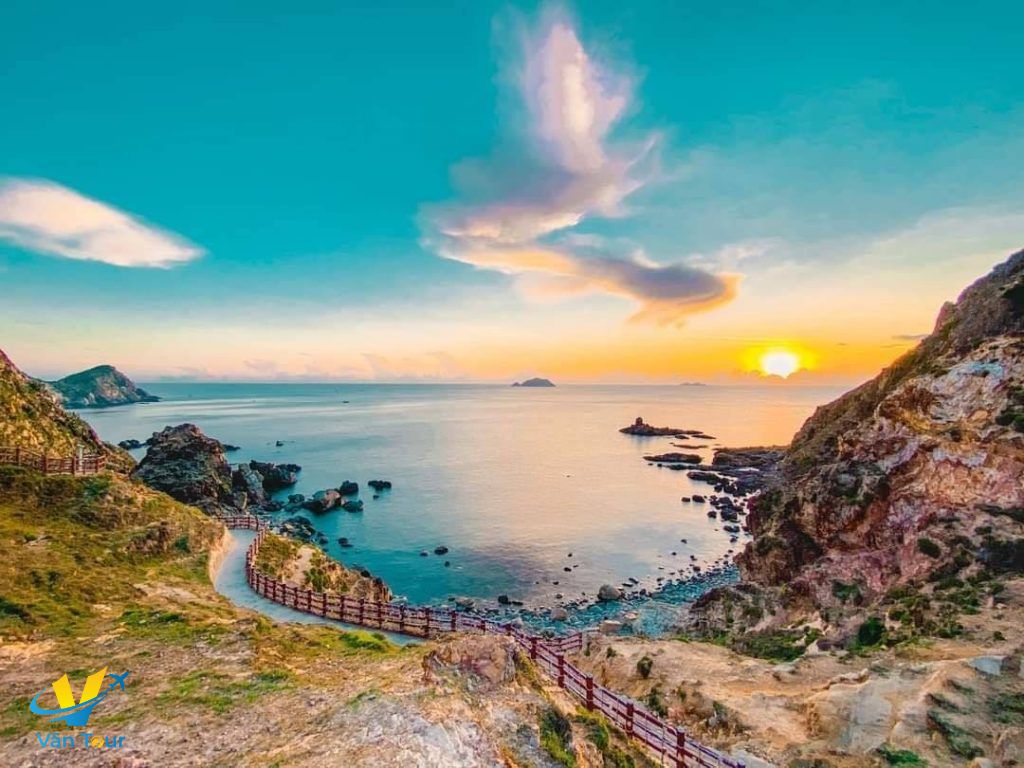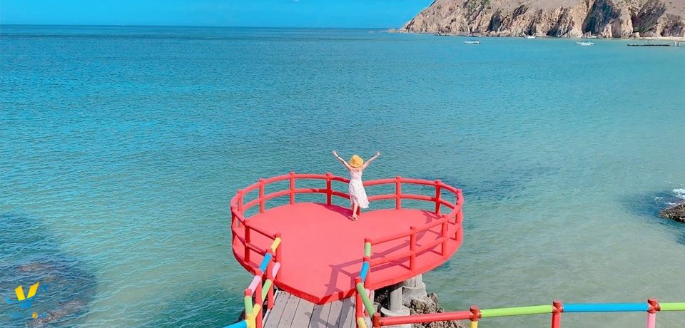 - Đến nơi, Quý khách hòa mình vào thiên nhiên, một bên là biển nước màu xanh lam trong vắt, một bên là núi đá cao sừng sững. Khám phá bãi cát dài mịn, khung cảnh hoang sơ đầy quyến rũ, đặc biệt được chấm phá bằng những công trình đặc sắc như Cầu Yến, Cầu Trái Tim, Kỳ Co Resort,… và những hang đá, suối nước đẹp đến bất ngờ.