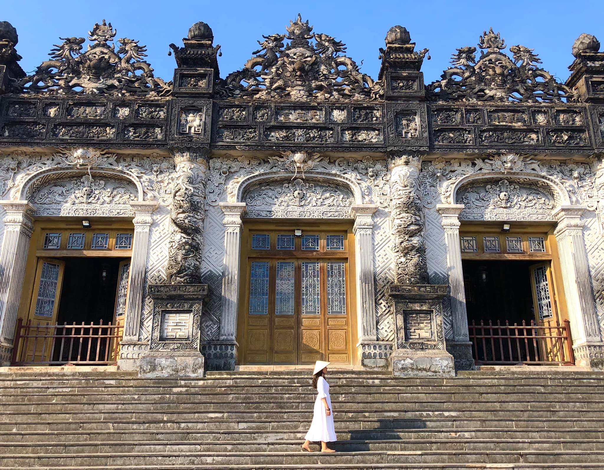 - Tiếp tục hành trình di chuyển khám phá quan Đại Nội Huế - nơi hội tụ các kiến trúc được giữ kín qua hàng trăm năm. Các công trình nổi bật, quý khách sẽ quan sát đó là cổng Ngọ Môn, Điện Thái Hoà, Đại Cung Môn, Cung Diên Thọ,…. Tại đây, quý khách sẽ được tìm hiểu về cuộc đời của những vị vua triều Nguyễn cũng như cuộc đời sống nơi cung cấm của họ như thế nào.