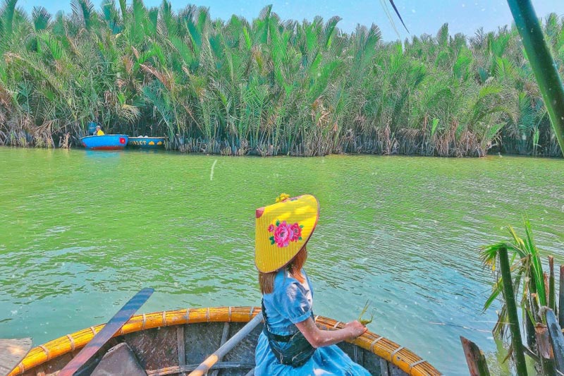- Điểm đặc biệt nhất ở đây chính là trải nghiệm đi thuyền thúng – loại phương tiện chỉ có ở những vùng sông nước miền Trung. Ngồi trên chiếc thuyền tròn nhỏ xinh, bạn được chính những người dân địa phương điều khiển khéo léo đưa đi sâu vào các lối nước nhỏ, vừa kể chuyện, vừa biểu diễn "xoay thúng" nghệ thuật. Có lúc, họ còn hướng dẫn bạn làm những món đồ thủ công như hoa hồng, nhẫn, hay nón lá mini từ lá dừa. Mọi thứ đều rất chân thật, gần gũi, như thể bạn đang thăm một ngôi nhà cũ trong ký ức.