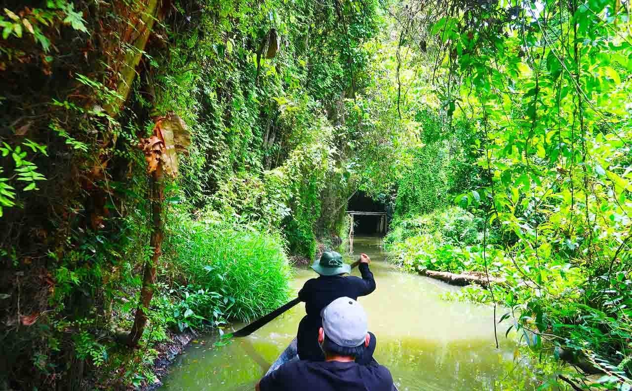 Sau khi tới một bến dừng chân bên trong rừng, du khách sẽ được chuyển sang một chiếc xuồng chèo tay loại nhỏ.