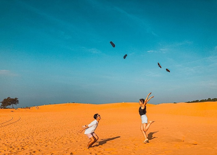 - Đoàn bắt đầu hành trình khám phá Mũi Né với đồi Cát Bay. Đến đây, du khách sẽ tận hưởng không gian thiên nhiên sống động và tham gia vào những hoạt động thú vị như trượt cát hay chụp hình check-in với những bức ảnh đắt giá.