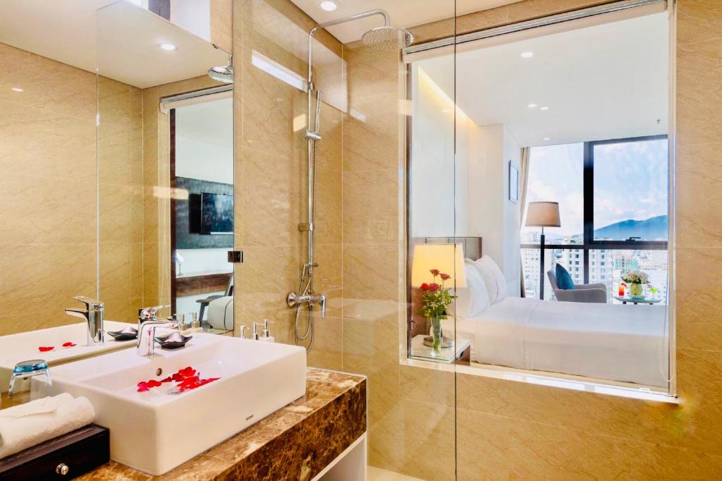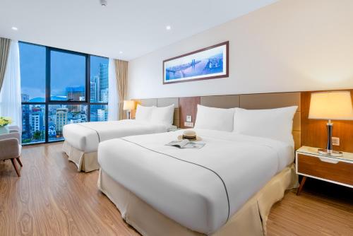 - Phòng suite family: được bố trí với 2 giường ngủ cực lớn, thiết kế nội thất hiện đại và ấm cúng. Ngoài ra phòng có cửa sổ to nhìn ra một phía biển và thành phố.