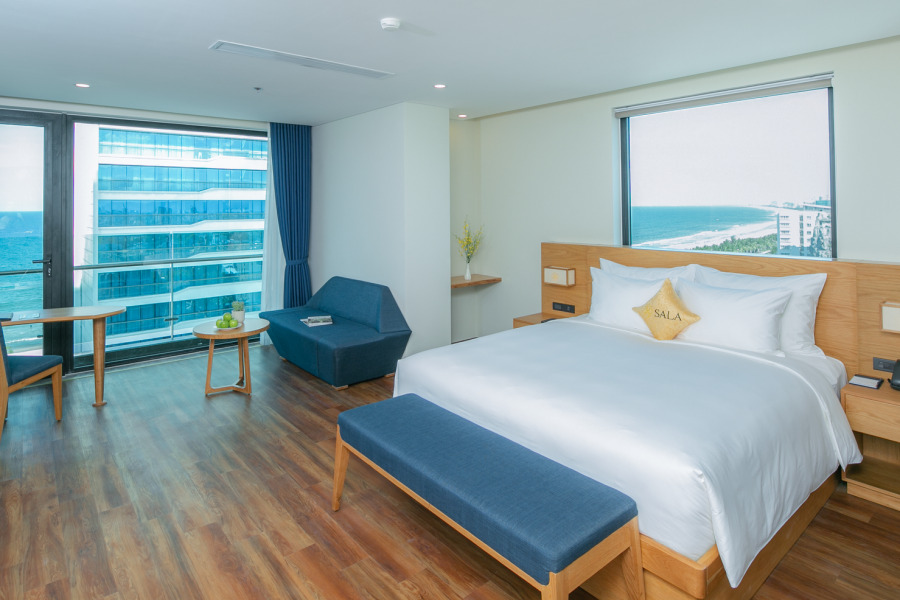Khách sạn Sala Đà Nẵng được xây dựng theo phong cách Nhật vô cùng sang trọng cùng hệ thống phòng lưu trú tiện nghi đến từng chi tiết nhỏ nhất chắc chắn sẽ làm hài lòng du khách ngay từ lần đầu tiên check-in tại đây. Các phòng nghỉ là sự kết hợp hài hoà giữa 2 tông màu trắng tinh khiết và màu xanh thiên thanh mang đến cho căn phòng sự tinh tế, trang nhã và thanh lịch. Mỗi phòng đều có hệ thống cửa sổ lớn hoặc ban công để quý khách có thể ngắm nhìn được toàn cảnh Đà Nẵng hoặc bãi biển Mỹ Khê xinh đệp.