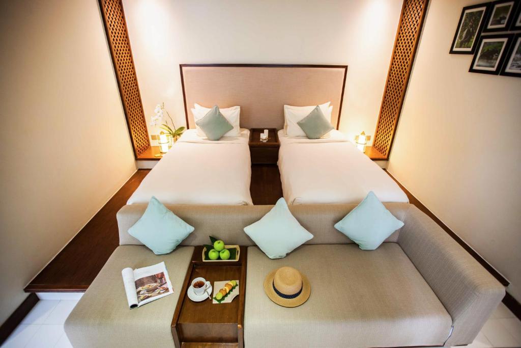 - Phòng Superior có hai sự lựa chọn dành cho du khách với phòng 1 giường đôi hoặc phòng 2 giường đơn. Căn phòng được thiết kế một cách đơn giản, gọn gàng nhưng vẫn toát lên sự sang trọng qua cách bài trí từng vật dụng, thiết bị tiện nghi hiện đại đáp ứng được nhu cầu lưu trú của quý khách. Đối với loại phòng này, quý khách có thể lựa chọn phòng Superior Pool hoặc Superior Town.