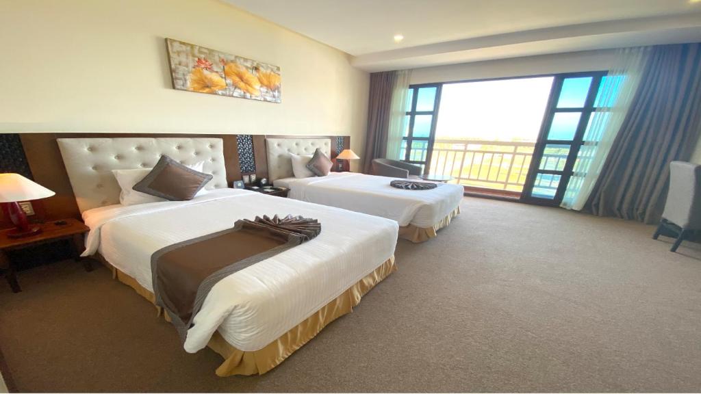 - Phòng Deluxe King/ Twin River View cũng có diện tích là 35m2 và thiết kế sang trọng với việc trang bị đầy đủ các thiết bị hiện đại. Từ căn phòng này, du khách có thể ngắm cảnh sông Hoài thơ mộng mang lại những phút giây thư giãn và bình yên nhất khi lưu trú ở đây. Chắc chắn rằng quý khách sẽ không thất vọng với tiện nghi, khung cảnh thiên nhiên trong lành nhìn từ ra từ căn phòng.