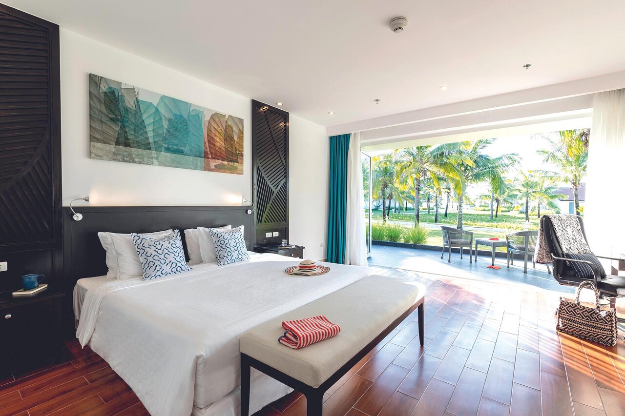 - Phòng Suite Deluxe: Đây là loại phòng có diện tích rộng tại Tui Blue Nam Hội An, tổng diện tích phòng lên tới 70m2. Gồm 1 giường cỡ King và các thiết bị trong phòng gồm điều hòa, Tivi màn hình LCD, mini bar, phòng tắm đầy đủ tiện nghi. Phòng có lối đi riêng và có khu vực ngồi chờ.