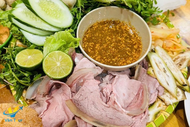 Món ăn được cuốn cùng bánh tráng phơi sương, rau sống phong phú và dưa leo, sau đó chấm với mắm nêm pha đậm vị. Sự kết hợp giữa các nguyên liệu tưởng chừng đơn giản lại tạo nên tổng thể hài hòa, khiến nhiều du khách “nhớ mãi không quên”. Giá bán dao động từ 50.000 – 200.000 đồng/phần, tùy quán và số lượng.