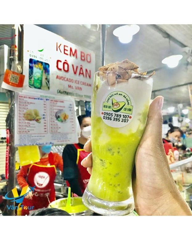 Khi nhắc đến những món ăn “must-try” tại chợ Bắc Mỹ An Đà Nẵng, kem bơ cô Vân luôn là cái tên được nhiều người truyền tai nhau. Gian hàng nhỏ nằm giữa khu ẩm thực của chợ nhưng lúc nào cũng đông khách, đặc biệt là sinh viên và du khách trẻ.
