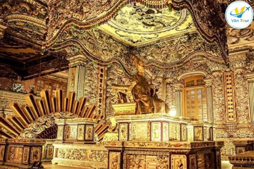 Ngay trung tâm chính điện là tượng vua Khải Định được đúc bằng đồng, đặt trên ngai vàng.