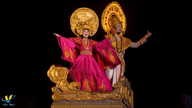 Màn diễn thứ hai tái hiện lễ cưới giữa công chúa Chăm Pa và vua Đại Việt – một sự kiện mang tính biểu tượng cho sự giao thoa và hòa hợp văn hóa. Không gian huyền bí, trang phục truyền thống cùng những điệu múa mềm mại đã giúp khán giả cảm nhận rõ nét vẻ đẹp văn hóa Chăm Pa từng hiện diện trên mảnh đất này.