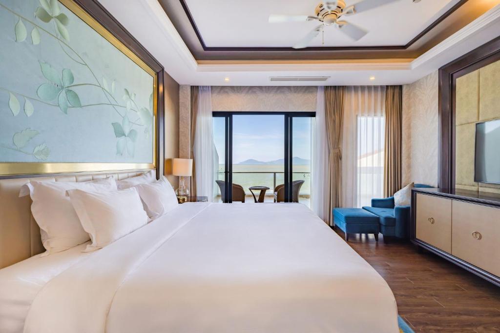 - Phòng Junior Suite cao cấp với thiết kế sang trọng, cách bày trí đơn giản như đầy trang nhã, cùng với hệ thống ban công rộng lớn giúp quý khách dễ dàng phóng tầm mắt đến với biển cả mênh mông.